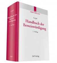 - Handbuchs der Beweiswürdigung. 40% aller Ärzte irren, aber wie viele Richter irren, ist nicht erforscht. Zur Vorauflage heißt es. „Inhaltlich ist das spannend und kurzeilig zu lesende Buch für Juristen eine wahre Fundgrube. Mit Blick auf die Beweisführung werden sowohl der Straf- als auch der Zivilprozess, speziell der Zeugenbeweis eingehend behandelt“ (so Vorsitzender Richter am Landgericht Dr. Prechtel in StRR 2010, 419).